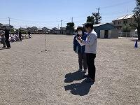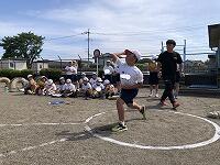 5年生は、先日「体力向上エキスパート・ティーチャー」にご指導いただいた「投げ方」を生かして、できるだけ遠くに投げていました