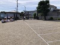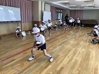 校庭での活動を予定していましたが、あいにく朝から雨降りだったので、体育館で行いました
