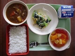 今日は、ふるさとメニューで、栃木市産の牛肉を使ったビーフカレーです。牛肉には、体の筋肉など体をつくる働きのタンパク質や、貧血予防に役立つ鉄分を多く含んでいます。