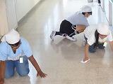 次に、実際にホウキ、チリトリ、ぞうきんの正しい使い方を実践的に学びました。掃除のあとの手洗いの大切さも知ることができました。