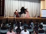 前半は、ソプラノとピアノによる名曲の演奏があり、子どもたちが演奏の途中で振り付けをする体験もしました。後半は、朗読もあり、「サウンド・オブ・ミュージック」の世界を味わいました。