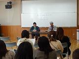 次に、保健室の先生から大宮北小の子どもたちの現状を教えてもらいました。朝食を食べている児童は、全体の75%程度で、その中にはごはんやパンだけの人がいること、就寝時刻が10時を過ぎる人が多いことなどを聞き、問題意識を高めました。