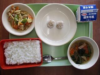 〈メニュー〉ごはん 牛乳 八宝菜 シュウマイ 春雨スープ