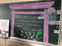 黒板や階段の踊り場にも、新年にふさわしい掲示が見られました担任の先生や担当の先生が、子どもたちを迎えるために、冬休みの間に準備してくれていました