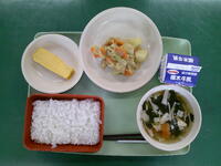 ごはん ぎゅうにゅう カレーにくじゃが あつやきたまご ゆばのすましじる