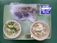 キャベツには、ビタミンCが豊富に含まれています。また、胃腸の働きを良くするビタミンUも多く含んでいます。今日は、きゃべつとブロッコリーのサラダにしました。野菜を毎日しっかり食べるようにしましょう。