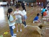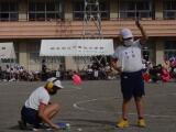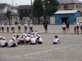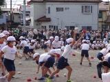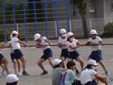 次は団体戦です。1・2年は、投げる力を生かした種目で力一杯球を投げました。3・4年生は、仲間と一緒に速さをそろえて走りました。5・6年生は、力を合わせる仲間が増えていく綱引きで、力を合わせました。