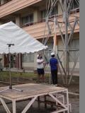 まずは、かまどの準備と海水をくみにいく班に分かれて活動します。