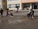 ドッチボールだと手でにぎることができない反面、腕や体全体を大きく動かすことにつながります。体育の後の休み時間は、早速ドッチボールで遊んでいました。