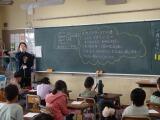 授業では、最初に体のどこが汚れるか話し合いました。手足や頭、顔など子どもたちからどんどん意見が出されました。