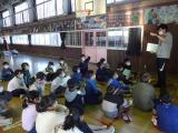 5年生は、体育館を使って学年合同で総合的な学習の時間を実施しました。11月に予定している臨海自然教室について説明を聞いたり、クイズに挑戦したりしました。とちぎ海浜自然の家で活動するグループで協力してゲームをすることで、お互いを応援することができました。
