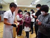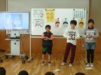 低学年に正しい手の洗い方と「あいうべ体操」のやり方について話をしました。
