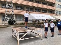 開閉会式係の5・6年生が、朝礼台を移動して・・・