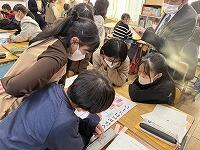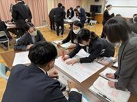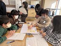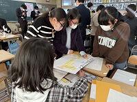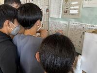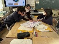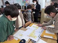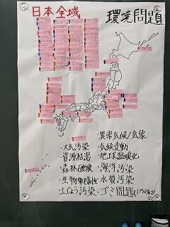 前時までに作成した日本地図、中間報告会で使用した資料を使って、日本中で様々な環境問題が起きていることを確認し、日本の環境が脅かされていることを視覚的に感じ取りました。