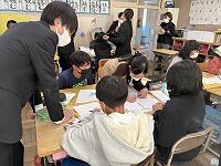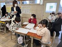 5年生の国語の時間は難しい内容だったけど、年長児の子たちは思わず注目していました。