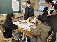 担任の先生と栄養教諭の先生が、子どもたちの中に入って、アドバイス・・・