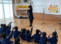 校長先生のお話をしっかり聞いた元気いっぱいのひらかわ幼稚園の年長組のみなさん。