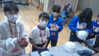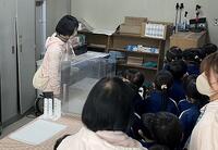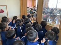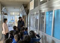 工事中の体育館を外から眺め、おいしいにおいがする給食室も離れたところから見学しました。