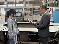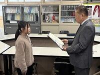 11月25日(火)の昼休みに、「税に関する絵はがきコンクール」の表彰式がありました。これは、公益社団法人 栃木法人会 女性部が主催するもので、栃木法人会より、会長様、専務理事様と事務局の方2名が来校され、校長室で、直接手渡しで伝達していただきました