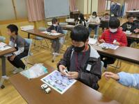 グループが二つに分かれて活動していました一つは他のグループの座標軸や付せんを確認しに行く。もう一つは、自分のグループに残って、友達からの質問に答えたり説明したりする。途中で、「今度は、僕たちが残るから、他のグループを回ってきていいよ」等と自主的に交代する子もいて、協力的な姿もたくさん見られました