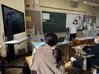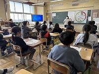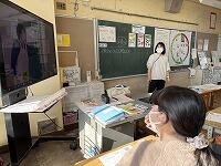 栄養教諭の先生の説明を動画撮影して、大型テレビに映して視聴しました