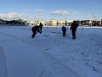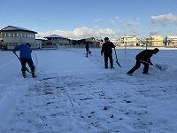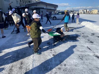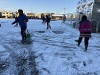 また、南側の駐車場だけでなく、昼休みに遊べるようにと、校庭の雪を移動させる作業も行いました