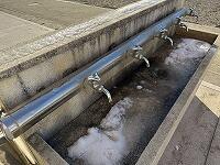 ↓↓ 池の水面も、水道(細く水を出していたのに…)も、凍っていました