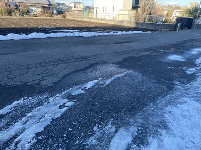 前の記事にもあるように、職員でも雪かきを行いましたが・・・凍った雪までは手が回りませんでした