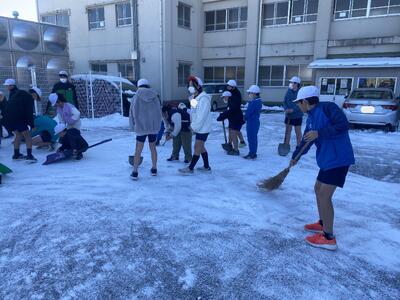 朝早く(7時前)から、続々と教職員が集まり、校舎北側の駐車場の雪かき作業をしました