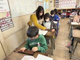 そろばんは初めて!という児童もたくさんいる中、とても丁寧にご指導いただきました