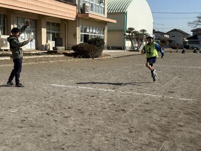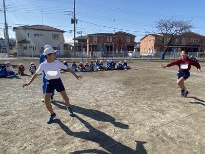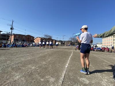 1走目の児童は緊張気味・・・ですが、後ろに並んでいる3走の児童が「がんばれ!」「大丈夫だよ!」「リラックス!」など様々な声掛けをしていました