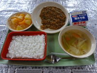 ごはん ぎゅうにゅう ガパオライスのぐ ゆでやさいサラダ チンゲンサイとたまごのスープ