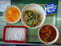 ごはん ぎゅうにゅう ポークカレー こまつなとコーンのソテー レモンのジュレポンチ