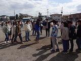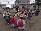 教室での集会が終わった地区から、校庭に集合して新しい班で分団ごとに下校しました。