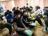 子どもたちは、体育館に用意した7つの講座から4つを選び、順番に話を聴きました。プレゼンテーションの写真に集中したり、しっかりとメモをとったりすることができました。