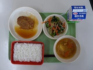 〈メニュー〉ごはん 牛乳 おろしハンバーグ 大根の味噌汁 おひたし