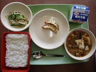 ごはん 牛乳 ギョウザ きゅうりのキムチ マーボー豆腐