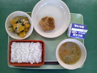 明日、12月21日は冬至です。冬至の日に、昔からかぼちゃを食べる習慣があります。今日は、かぼちゃのそぼろあんかけが給食に出ています。かぼちゃには、カロテンが豊富でかぜの予防に役立ちます。かぼちゃを食べて、冬を元気に過ごしましょう。
