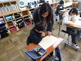 1年生の教室では、図工で絵の具を使っているところやタブレット端末を使っているところを見ることができました。大宮北小のキャラクター「夢まると夢っち」に興味をもって、あちこちで発見して喜んでいました。