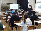 次に、保健室の先生から大宮北小の子どもたちの現状を教えてもらいました。朝食を食べている児童は、全体の75%程度で、その中にはごはんやパンだけの人がいること、就寝時刻が10時を過ぎる人が多いことなどを聞き、問題意識を高めました。