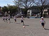 4年生が、団体種目「巻き起こせ!大北旋風!」の練習をしました。いわゆる「台風の目」と呼ばれる内容ですが、友だちと棒を運ぶ姿は、まさに「協力」です。3年生も同じような種目ですが、4年生では待っている友達の足の下を通すというとても難しい内容が加わっています。