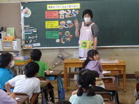 2年生が学級活動で食育の授業を行いました。担任と栄養教諭の先生が一緒に授業をしました。