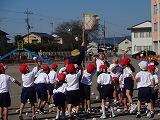 まずは、一緒に走る子どもを並べました。他のクラスの人と走るので子どもたちは意欲が高まっていました。