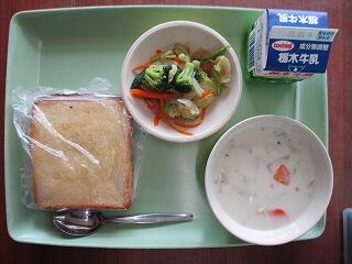 〈メニュー〉コッペパン ツナサンドの具 牛乳 ワンタンスープ りんごのジュレポンチ