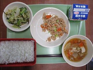 〈メニュー〉ごはん 牛乳 ぶたキムチ丼の具 わかめと卵のスープ 即席漬け