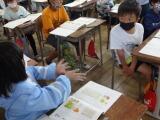 3時間目に2年生が1年生をつれて、学校の中を案内してくれました。各教室を案内しながら「ここは校長室だよ。写真がいっぱいあるよ。」「図書室の本を返すときは、ここに返すんだよ。」「ALTの先生と英語を勉強する教室だよ。」など、くわしく説明してくれました。