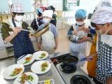 油や調味料の量や炒め具合に気を付けながら、声をかけ合って作り上げました。お皿にきれいに盛り付けて、いよいよ完成です。