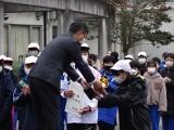 3区女子、5区女子、6区男子は、区間賞をとるすばらしい走りでした。今回が初めての男女混合なので、本校の記録が新記録となりました。補欠の選手も精一杯の応援をしてくれました。チーム全員の力で勝ち取った優勝カップだと思います。送迎等ご協力いただいた保護者の皆様ありがとうございました。