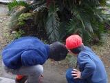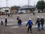 上手に水たまりを避けてドッジボールをする子、水たまりをよけるように飛び跳ねる子など、思い思いの楽しみ方をしていました。いつもはしないけれど植え込みの下をのぞいて、ねぎのような植物を発見して喜ぶ子も見かけました。