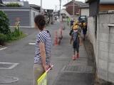1年生は、下校時に日傘を差したり、マスクをはずしたりして自分なりに予防をして帰りました。職員が地域巡回を行い、安全の確保に努めました。